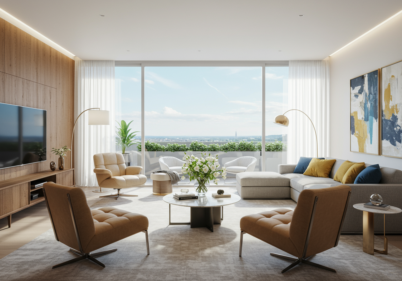 Its stylish spaces include an open living and dining area; an Italian-designed kitchen with top-caliber appliances; a study or den; and four peaceful bedrooms. Brazilian walnut hardwood floors, triple-glazed windows, custom door screens, electronic sheers, Lutron lighting, and a central audio system can be found throughout. The home is a delight year-round, from summer days gardening on the terrace to winter evenings by the fire, watching the snow fall.