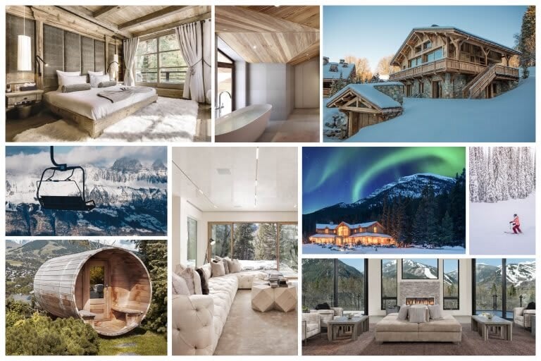 Clockwise from top left: 1. Propriétés de Courchevel Sotheby’s International Realty 2. Propriétés de Courchevel Sotheby’s International Realty 3. Propriétés de Megève Sotheby’s International Realty 4. Aaron Benson / Unsplash 5. Sotheby’s International Realty Canada 6 Aspen Snowmass Sotheby’s International Realty 7. Aspen Snowmass Sotheby’s International Realty 8. Propriétés de Megève Sotheby’s International Realty 9. Patrick Robert Doyle / Unsplash