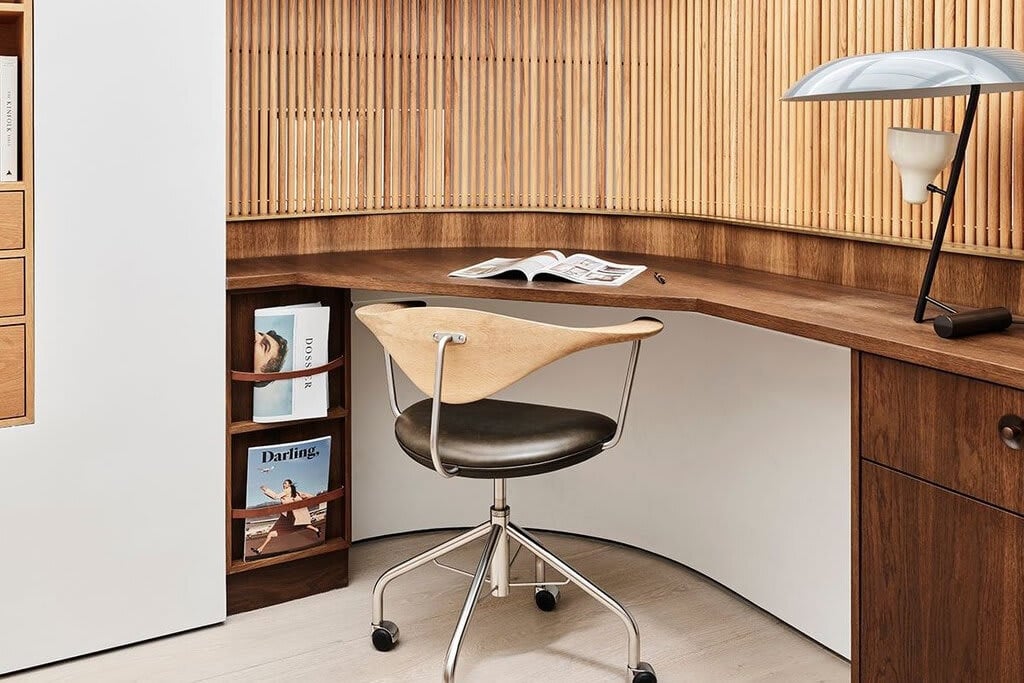 When it comes to desks, work surfaces with adjustable height capabilities allow you to take much-needed breaks from sitting, while materials like marble and reclaimed wood will keep work stations from feeling too corporate. In your home office, comfort should be your top priority, and finding the right chair and desk is an investment in your health and wellbeing that will help keep you at your best, most productive self.