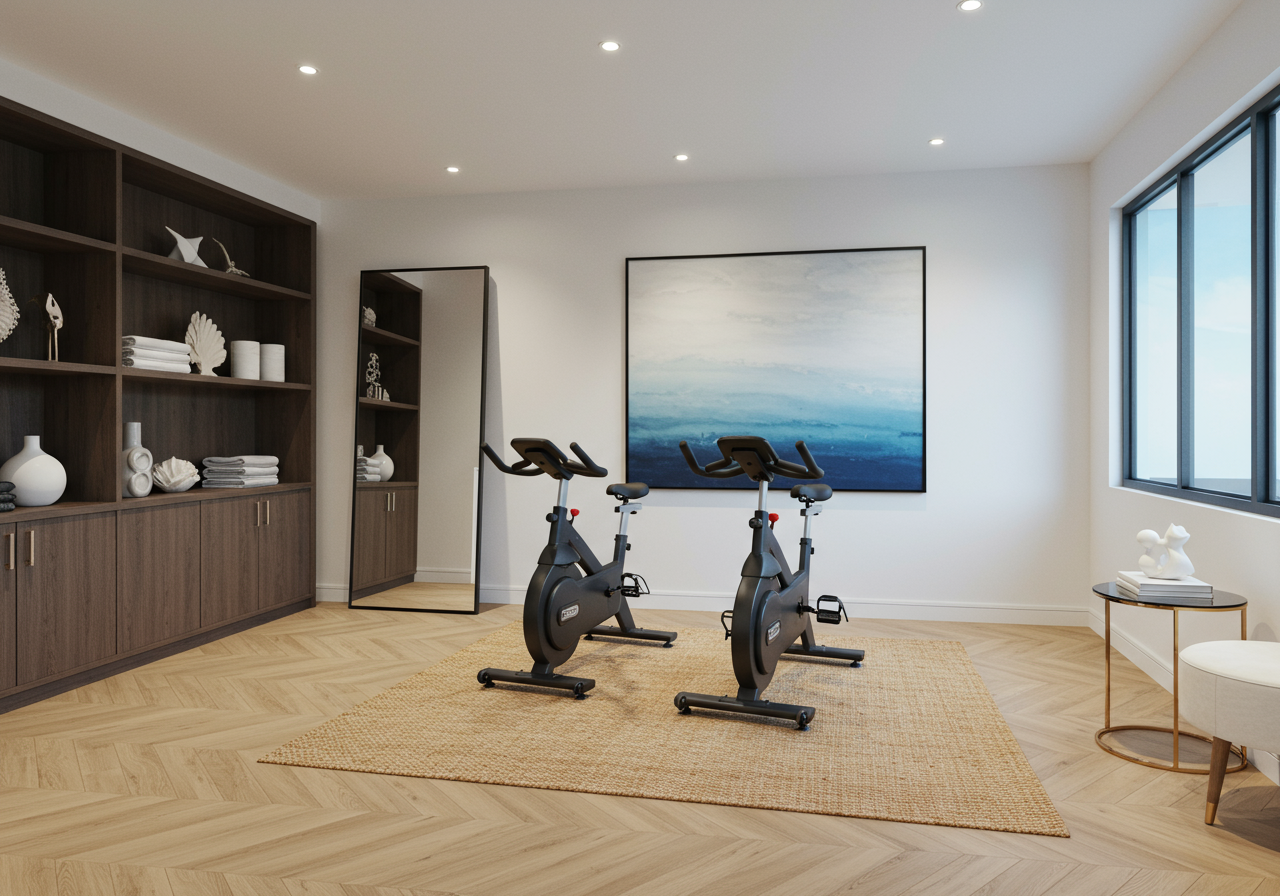If possible, find a spot in your office where you can establish a fitness corner and furnish it with your favorite equipment. If lifting weights helps you process your thoughts, add a bench and weights in varying sizes for a quick 10-minute lift session. For yoga enthusiasts, find a permanent spot for a mat; for fans of virtual fitness classes, create a dedicated space in front of your computer so you can join in without needing to reconfigure the room every time. By adding a fitness space into your work area, you’ll give yourself permission to take a much-needed pause, while replacing movement between meeting rooms or to colleagues’ offices with other exercise throughout the day.